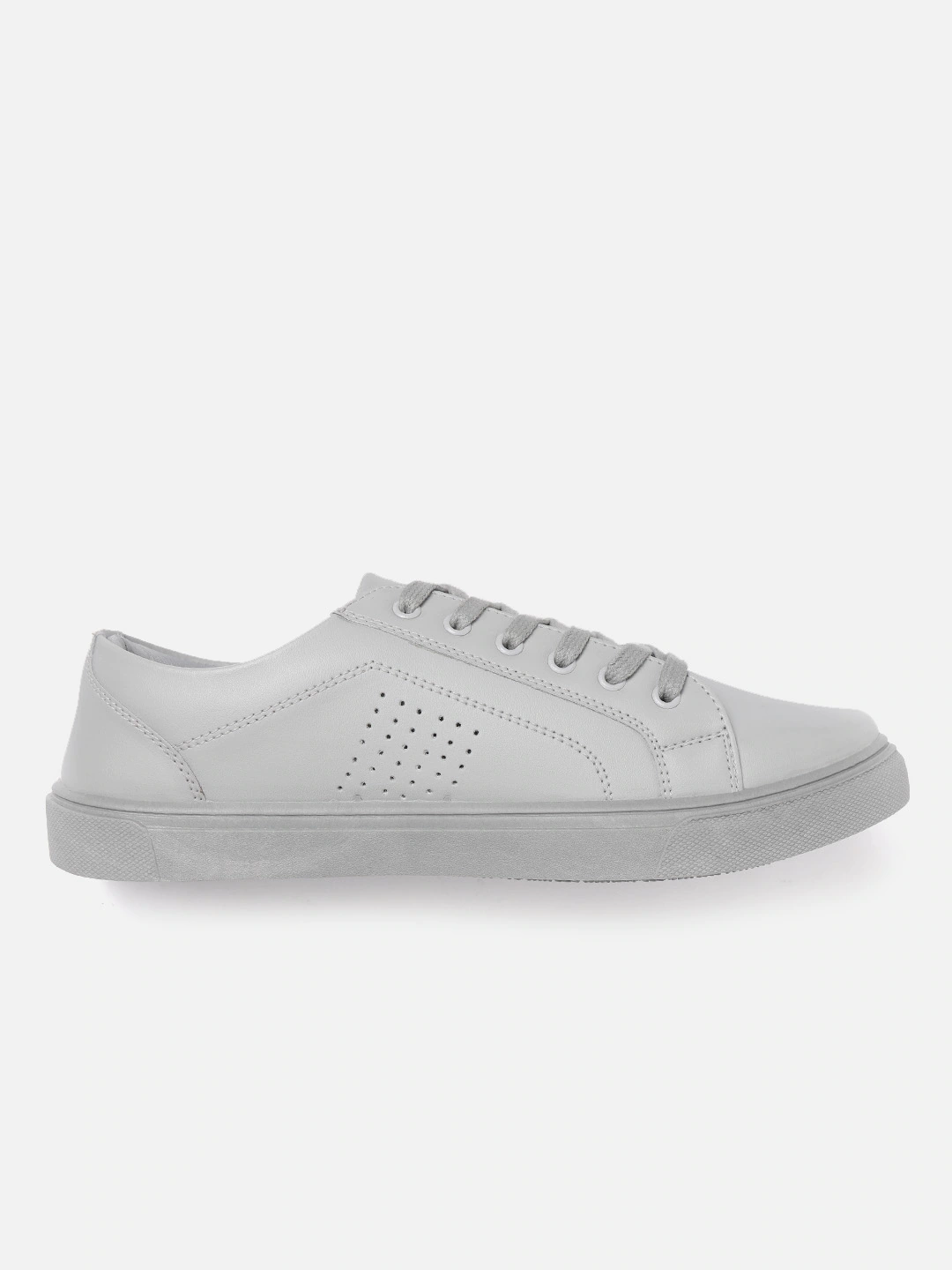 A pair of round toe grey sneakers, has regular stylingLace-ups detailSynthetic upperCushioned footbedTextured and patterned outsoleWarranty: 1 monthWarranty provided by brand/manufacturer